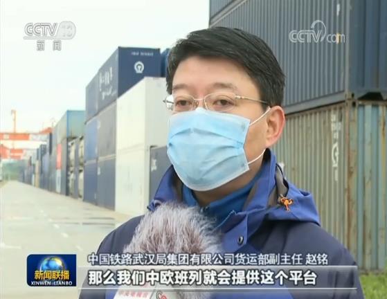總臺(tái)央視記者 金珠:我現(xiàn)在是在中鐵聯(lián)集武漢中心站,這是自疫情防控以來從武漢開出的首趟中歐班列,它也標(biāo)志著武漢的中歐班列恢復(fù)了常態(tài)化的運(yùn)行。