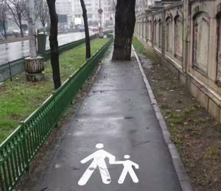 地面標(biāo)線其實(shí)反映了一個(gè)悲壯的事故,——“走,我們一起去撞樹!”,——“不!”,——“別怕,我拉著你!”。老樹很委屈:“當(dāng)我是一棵樹苗的時(shí)候,這里還是一片荒野!我一直就在這里,從未離開!怎么就占了你們?nèi)祟惖穆??!?/span>