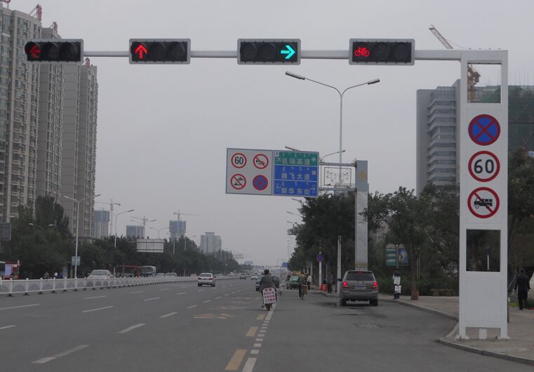 其二,這個“新版紅綠燈”中,用“新版”兩字定義“紅綠燈”,使用不當(dāng)。目前我國所規(guī)范的常見紅綠燈,主要包括:機(jī)動車信號燈(俗稱“圓盤燈”)、方向指示信號燈(俗稱“箭頭燈”)、非機(jī)動車信號燈(俗稱“自行車燈”)、人行橫道信號燈(俗稱“人行燈”)、車道信號燈(俗稱“紅叉綠箭頭燈”)、閃光警告信號燈(俗稱“黃閃燈”)等,在這種所謂的“新版紅綠燈”中,只是采用了一種“左轉(zhuǎn)箭頭燈”+“滿屏燈”和“右轉(zhuǎn)箭頭燈”的組合方式,并可根據(jù)調(diào)控需要,實(shí)時關(guān)閉左、右箭頭燈,切換成不同類型的紅綠燈組合,其本質(zhì)只是一種可切換的紅綠燈亮燈組合,而不是所謂的“新版紅綠燈”,因?yàn)榧t綠燈的樣式并沒有改變,仍是符合國標(biāo)《道路交通信號燈》(GB14887-2011)的技術(shù)要求,所以準(zhǔn)確的叫法應(yīng)該是:“新版紅綠燈亮燈組合”。