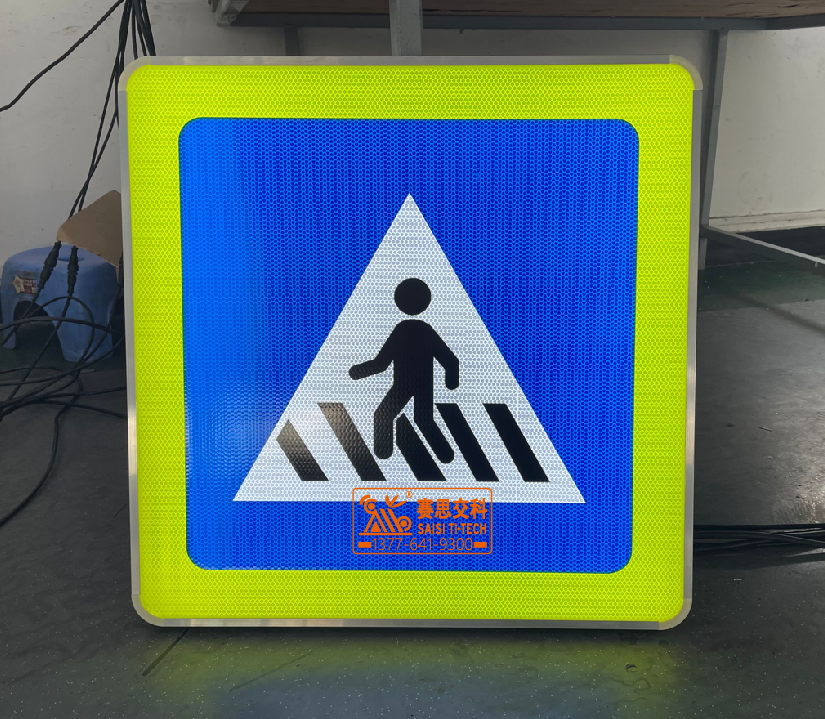 (2)標(biāo)志體、控制機(jī)箱連接結(jié)構(gòu)件滿足國家標(biāo)準(zhǔn)《道路交通標(biāo)志板及支撐件》(GB/T23827)相關(guān)要求,逆反射材料采用專用透光膜(其中透光率≥20%,透光均勻性1.2:1~1.3:1),其他技術(shù)要求符合國家標(biāo)準(zhǔn)《道路交通反光膜》(GB/T18833)。